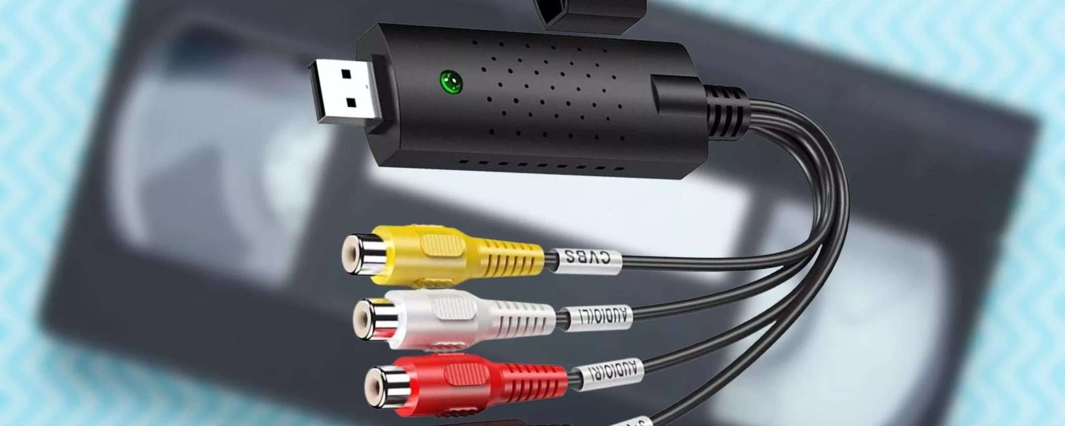 Tutto quello che ti serveè questo dispositivo in sconto a 5,99€ appena, che dovrai abbinare al tuo PC ed a una periferica come un vecchio videoregistratore o una videocamera. A quel punto, hai il tuo set completo per effettuare la digitalizzazione delle videocassette e potrai farlo tutte le vuole che lo desideri.