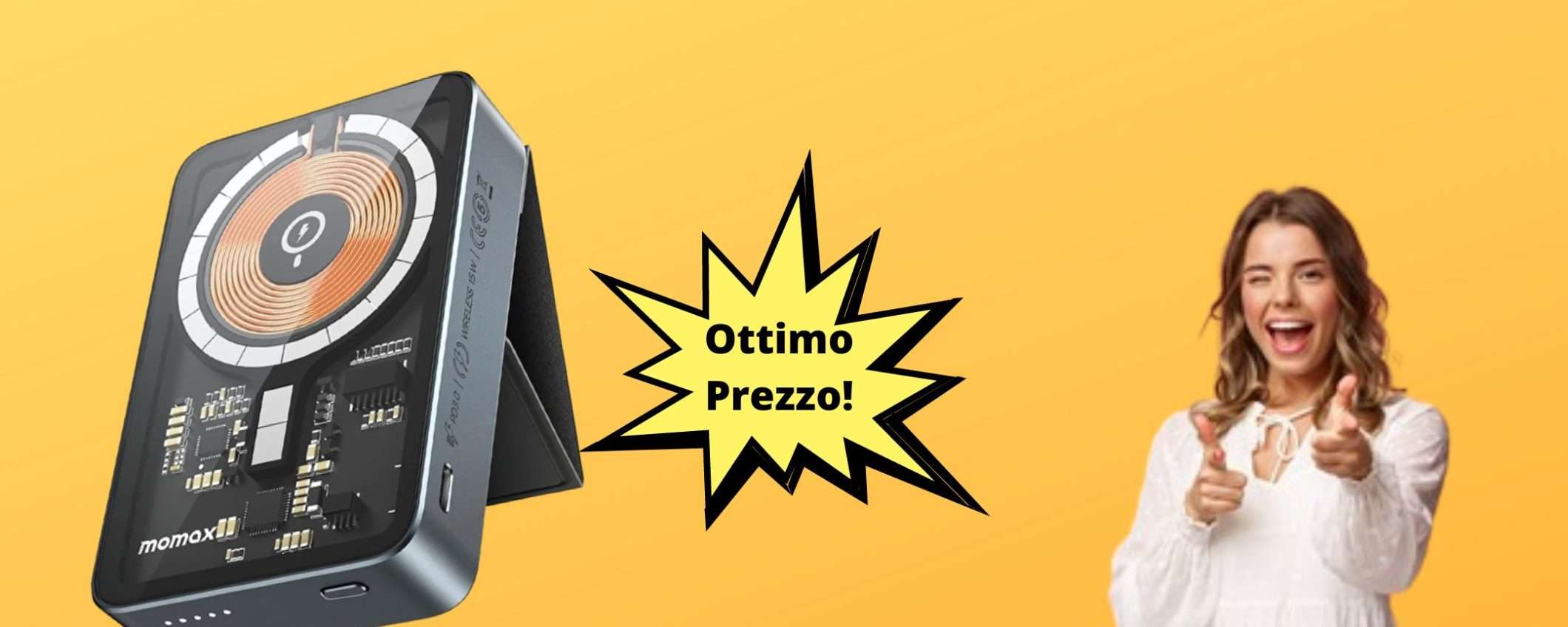Se sei sempre a corto di energia con il tuo nuovo smartphone che supporta anche la ricarica senza fili, questo prodotto potrebbe fare al caso tuo. Sul noto store online Amazon potrai infatti acquistare questo fantastico power bank magnetico con ricarica wireless ad un ottimo prezzo, grazie ad uno sconto complessivo del 26% con apposito coupon dedicato. Si tratta però di un’offerta che sta per scadere, quindi non puoi proprio perdere tempo. Potrai inoltre ricevere questo prodotto già domenica se lo ordinerai al più presto. E allora non esitare, corri su Amazon e porta a termine il tuo acquisto.