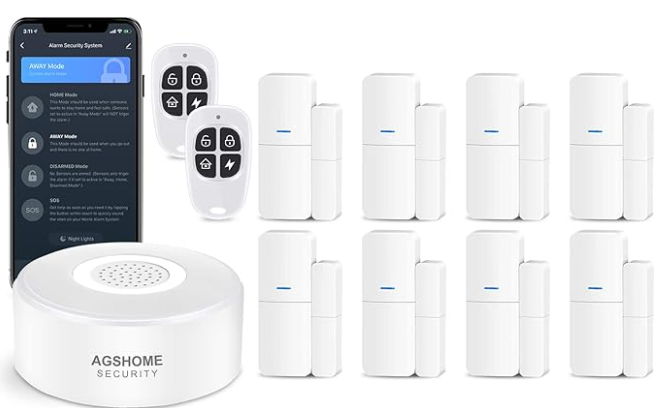 AGSHOME nel suo kit di sicurezza di allarme comprende una stazione base, una tastiera, 10 contatti per porte e finestre, un rilevatore di movimento e due telecomandi. La sirena è molto potente (fino a 120 decibel), mentre l’applicazione consente il check-in da qualsiasi parte del mondo, fornendo notifiche in tempo reale quando suona l’allarme.