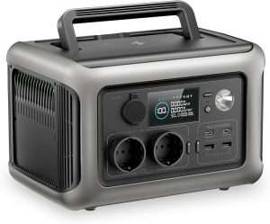 Nell’uso quotidiano colpisce soprattutto la rapidità. Collegata alla presa di casa, la R600 si ricarica completamente in circa un’ora, un aspetto che la rende estremamente pratica anche quando serve all’ultimo momento. La batteria LiFePO4 garantisce una lunga durata nel tempo e maggiore sicurezza, mentre la funzione UPS integrata permette di mantenere alimentati i dispositivi più delicati in caso di interruzione improvvisa della corrente. Abbinata a un pannello, diventa anche una power station solare compatta, perfetta come centrale elettrica solare portatile silenziosa e senza manutenzione.