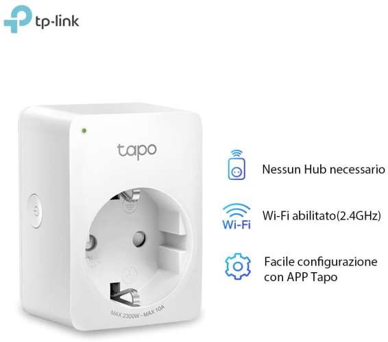 La presa TP-Link, è una delle più vendute al momento. Essa controlla i dispositivi connessi allo smart plug ovunque ci sia internet utilizzando l’App Tapo sul vostro smartphone. Dotata anche di controllo vocale, compatibile sia Alexa che Google, a vostro piacimento. Non è richiesto un hub per connettersi. Attenzione al carico massimo di 2300 watt.