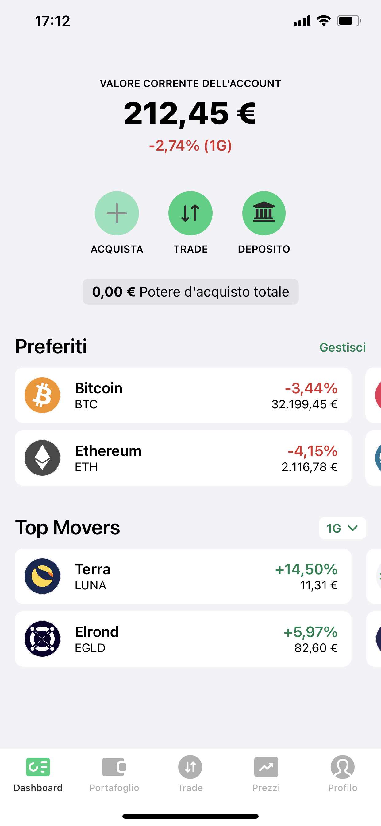 Scorrendo visualizzerai i Preferiti, cioè gli asset che hai salvato come preferiti e i Top Movers, ossia quelli che si stanno facendo notare per i loro movimenti dei prezzi.