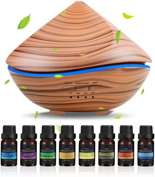 Molto gradevole esteticamente e con curve morbide, anche per la striscia che si illumina, il diffusore HappyGoo da 500ml può funzionare per più di 12 ore continue senza bisogno di aggiungere acqua. Sempre silenzioso e con spegnimento automatico con timer o al termine dell’acqua, all’interno della confezione troviamo anche 8 boccette di oli essenziali con i consigli sugli abbinamenti per creare il mood giusto o per dormire meglio.