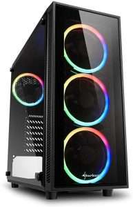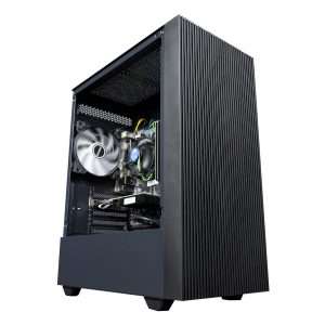 Passiamo a un modello che colpisce subito l’occhio grazie al cabinet Sharkoon TG4 con quattro ventole RGB. Questo modello presenta sotto il cofano un processore Intel i3 10105F da 4,40 GHz, una GPU Nvidia GT 1030, un SSD M.2 NVMe da 1 TB, il tutto montato su una scheda madre H410M socket 1200.