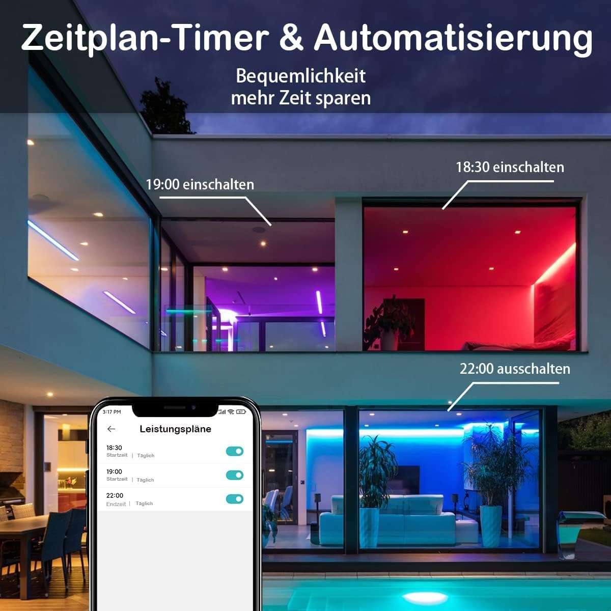 Sempre tramite l’app le puoi controllarle anche mentre non sei a casa e quindi se ti accorgi che una luce è rimasta accesa per sbaglio la spegni con un tap sullo smartphone. Puoi anche pianificare l’accensione e lo spegnimento. E se possiedi un dispositivo Echo, le puoi collegare e controllare con i comandi vocali di Alexa e Google Assistant.