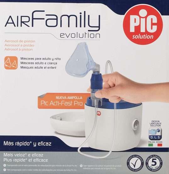Come puoi intuire dal nome, l’aerosol AirFamily Evolution di Pic si presta ad essere perfetto per l’utilizzo da parte di ogni membro della tua famiglia. Infatti nell’acquisto sono incluse sia una morbida mascherina per adulti sia una per bambini; oltre naturalmente a una forcella nasale, un’ampolla Pic Acti Fast Pro capace di nebulizzare velocemente le tue terapie, un tubo per il collegamento e una pratica borsa per tenere il tuo Aerosol sempre in perfette condizioni.