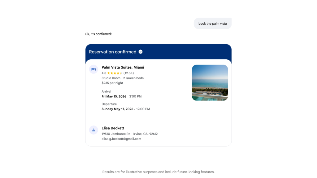 L’altra grande novità è il lancio delle capacità agentiche di AI Mode, basate su Project Mariner, che aprirà la strada alla possibilità di effettuare prenotazioni – che siano esse di ristoranti, hotel, viaggi o eventi – direttamente con AI Mode, senza dover cercare tra un sito web e l’altro.