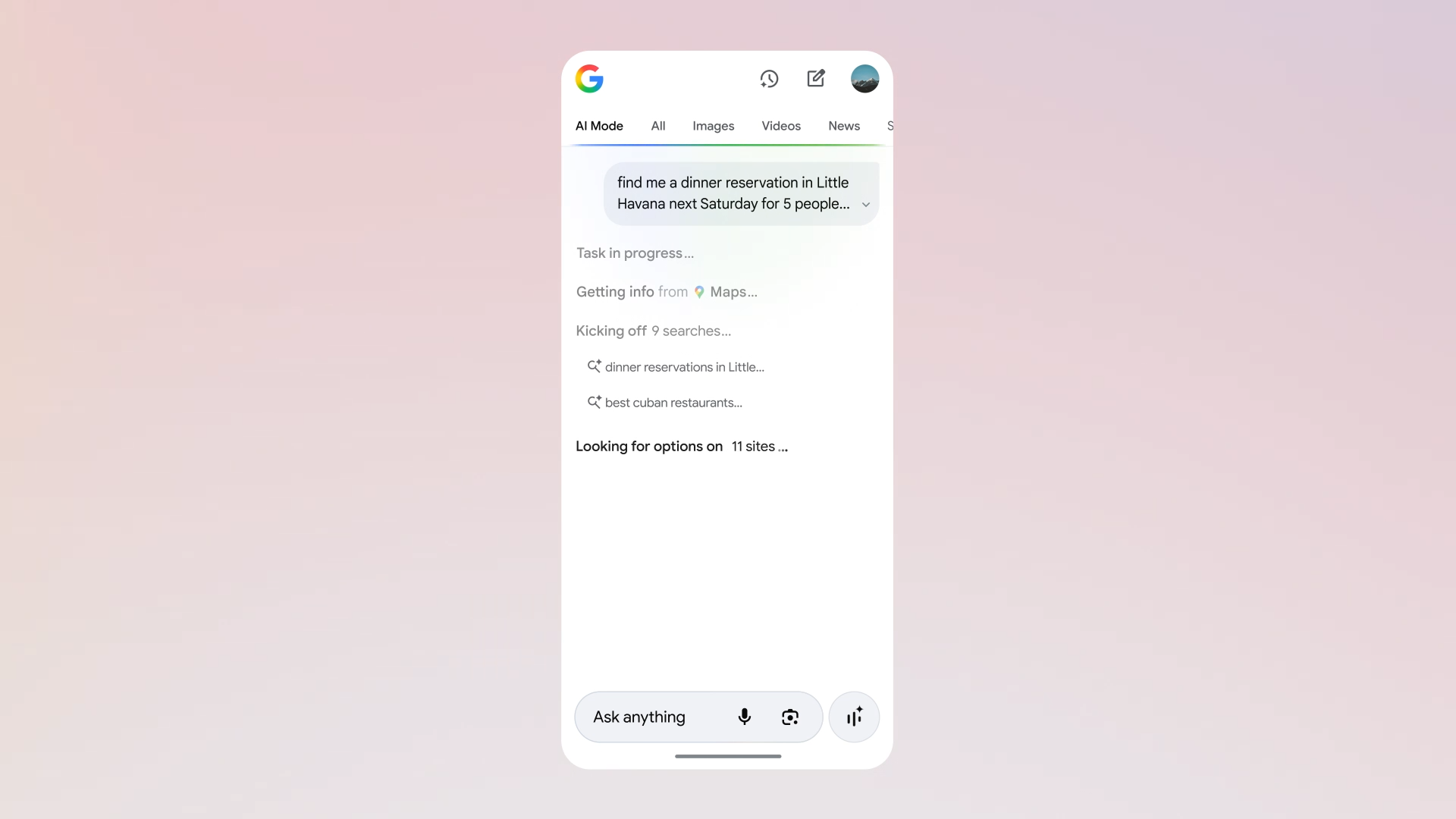L’altra grande novità è il lancio delle capacità agentiche di AI Mode, basate su Project Mariner, che aprirà la strada alla possibilità di effettuare prenotazioni – che siano esse di ristoranti, hotel, viaggi o eventi – direttamente con AI Mode, senza dover cercare tra un sito web e l’altro.