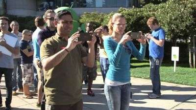 Nel video viene mostrato l’arrivo ed il posizionamento della statua alla presenza di tanti dipendenti che non perdono occasione per immortalare l’evento con i loro device. Uno di questi (min 0:38), per scattare foto, utilizza un inedito device caratterizzato da una grande fotocamera e da una scritta “Nexus” verticale coperta da un poco di nastro adesivo. Visibile anche a malapena quello che potrebbe essere il logo di LG Electronics. Tutti questi indizi lascerebbero pensare che il device in questione possa essere un Nexus 5.