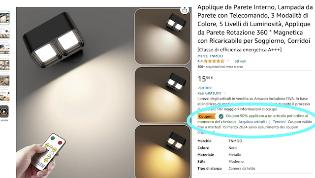 ATTENZIONE: per usufruire dello sconto del 50%, è fondamentale applicare il coupon in pagina, proprio come mostrato nella seguente immagine d’esempio.