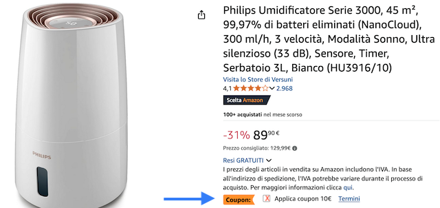 Umidificatore Philips Serie 3000 a 79,90€ invece di 129,90€.