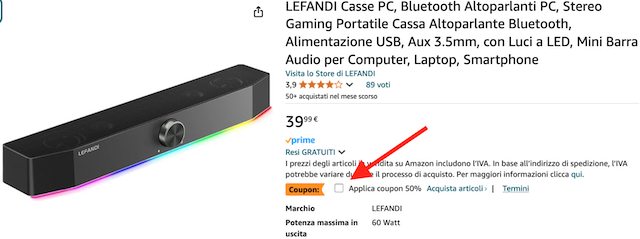 Attenzione: per accedere allo sconto supplementare, devi attivare l’offerta in pagina, come mostrato nella seguente immagine d’esempio.