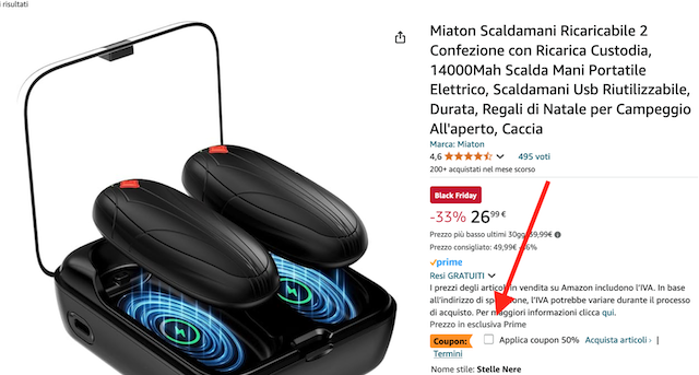 I coupon rendono gli sconti del Black Friday Amazon ancora più ghiotti! Infatti, ti permettono di ottenere ulteriori sconti su prodotti già scontatissimi. Dai un’occhiata alla nostra selezione di opportunità a tempo limitato, super interessanti e disponibili a questo prezzo solo per un periodo limitato. Attiva il coupon in pagina, come nell’immagine d’esempio, per approfittare delle promozioni.