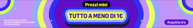 Per scoprire la promozione, ti basta mettere nel carrello i prodotti che ti interessano di questa selezione a meno di 1€ – massimo 3 per account – e poi incollare il codice ” LUCKY10 ” al momento del pagamento. Otterrai il tuo sconto immediatamente e, se saprai usarlo al meglio aggiungendo anche altri prodotti fuori promozione, potrai risparmiare ancora di più!
