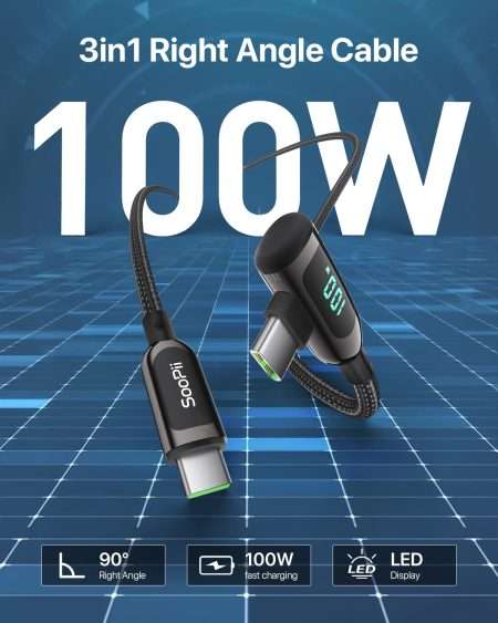 Questo cavo USB-C da 100W è dotato di un display che ti permette di controllare la potenza della ricarica o dell’alimentazione del tuo dispositivo: saprai con certezza se tutto funziona come dovrebbe. Inoltre, è in grado di trasferire dati ad alta velocità. Per finire, è di altissima qualità: rivestito in corda di nylon, risulta robustissimo. Se sei alla ricerca di un cavo di alta qualità, questo prodotto fa per te! Spunta il coupon in pagina e prendilo a 8,79€ appena.