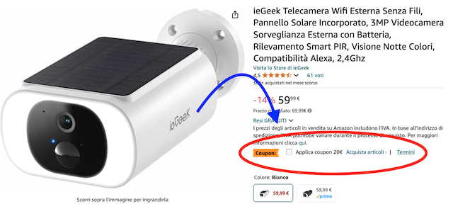 Videocamera di sicurezza smart da esterno (o interno) con risoluzione 2K a 30,99€ invece di 39,99€.