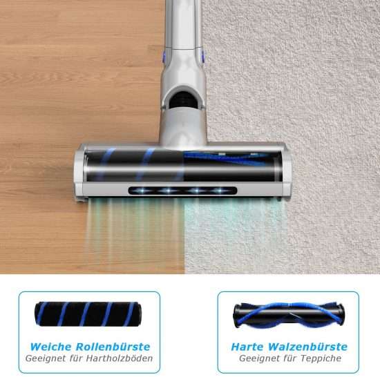 Fra le chicche di questo gioiellino, c’è la doppia spazzola, che puoi cambiare sulla base delle tue esigenze e non solo. L’estremità dell’accessorio per aspirare il pavimento è dotata di luci LED, che si occupano di illuminare alla perfezione anche gli angolo più bui.