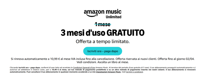 Chi è alla ricerca di un servizio di streaming musicale completo ha oggi un’opportunità interessante: Amazon Music Unlimited propone una promozione dedicata ai nuovi utenti, che consente di utilizzare la piattaforma gratuitamente.
