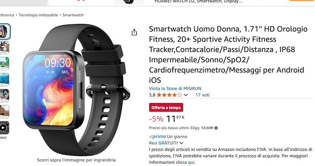 Smartwatch con ampio display e tante funzioni a 11,97€.