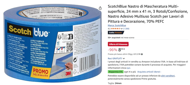 Nastro di mascheratura ScotchBlue a 8,99€ (sconto 96%).