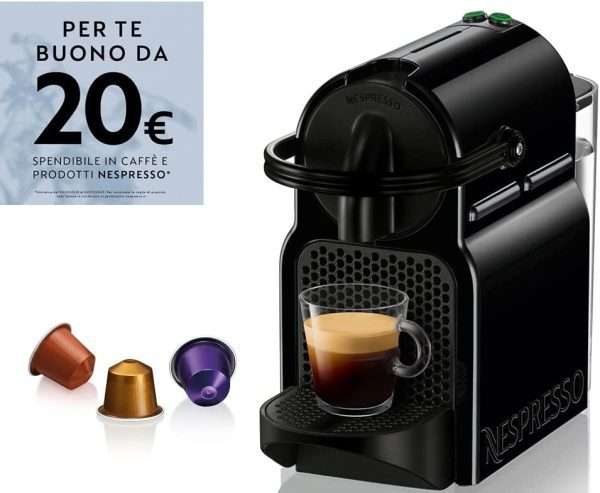 - Nespresso Inissia, eccellente macchina con una miriade di capsule compatibili già disponibile in commercio, a 75,99€ invece di 99€ (buono da 20€ in omaggio per l’acquisto delle prime capsule).