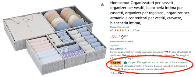 Contenitori per organizzare i cassetti a 9,99€ invece di 19,99€.