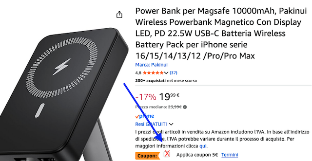 Powerabank da 10000 mAh compatibile con sistema MagSafe a 14,99€.