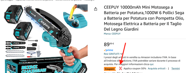 Motosega con due batterie e accessori a 44,99€ invece di 89,99€.