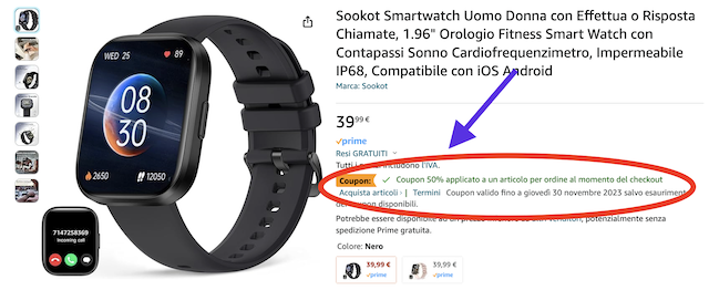 ATTENZIONE: l’unico modo per risparmiare, ottenendo il massimo dello sconto, è ricordarsi di attivare il coupon in pagina come nell’immagine d’esempio sottostante.