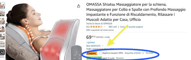 ATTENZIONE: i prezzi che visualizzerai sono ancora da scontare! Per tagliarli esattamente a metà, devi attivare il coupon direttamente nella pagina prodotto, su Amazon. Se non dovessi visualizzarlo, come mostrato nell’immagine d’esempio seguente, allora significa che la promozione è già finita. Pronto? Buon divertimento!
