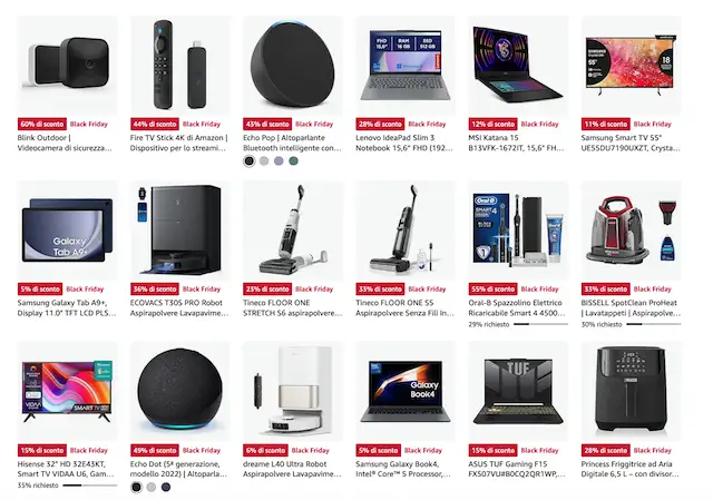Amazon ha una sezione utilissima, dedicata alle 100 migliori offerte del momento, dedicate alla settimana del Black Friday. Puoi scegliere fra prodotti di ogni categoria: moda, elettronica, cura della casa, fai da te e non solo!