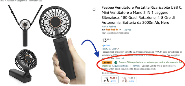 Veramente un peccato non approfittare di queste occasioni Amazon a tempo limitato, che ti permetteranno di portare a casa quello di cui hai bisogno, approfittando di uno sconto super del 50%. Scegli la tue preferita fra le occasioni che abbiamo selezionato, ma attenzione: per ottenere il massimo del risparmio, è fondamentale attivare l’offerta in pagina, proprio come nell’immagine d’esempio seguente. Se non vedi il coupon, allora la promozione è terminata.