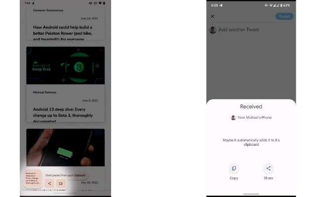 Android 13 semplificherà di molto la condivisione rapida di testi e immagini