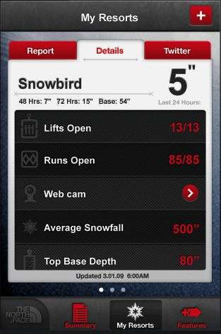 The North Face Snow Report ha tutto ciò di cui si ha bisogno per il prossimo viaggio, incluso informazioni sulle località sciistiche nel mondo, avvertimenti sulle valanghe, condizioni della neve per una località specifica, previsioni del tempo fino a 5 giorni e mappe delle piste.