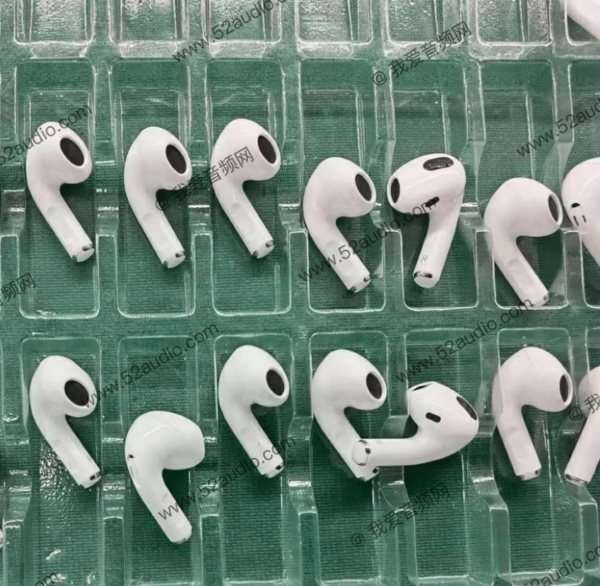 Una nuova serie di foto rilasciate dal media cinese 52Audio ha rivelato che gli Apple AirPods di prossima generazione avranno una vestibilità universale; inoltre, come si può notare dall’immagine qui sotto, gli AirPods 3 presenterebbero una stretta somiglianza con gli AirPods Pro, arricchiti tuttavia in con alcune funzionalità ottimizzate per una migliore efficienza e più elevate prestazioni.