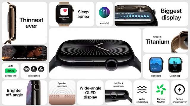 Con nuovi colori, capacità di rilevamento della temperatura dell’acqua e altoparlanti più potenti, Apple Watch Series 10 sarà disponibile dal 20 settembre a partire da 399 dollari per il modello GPS e 499 dollari per la variante GPS+Cellular.
