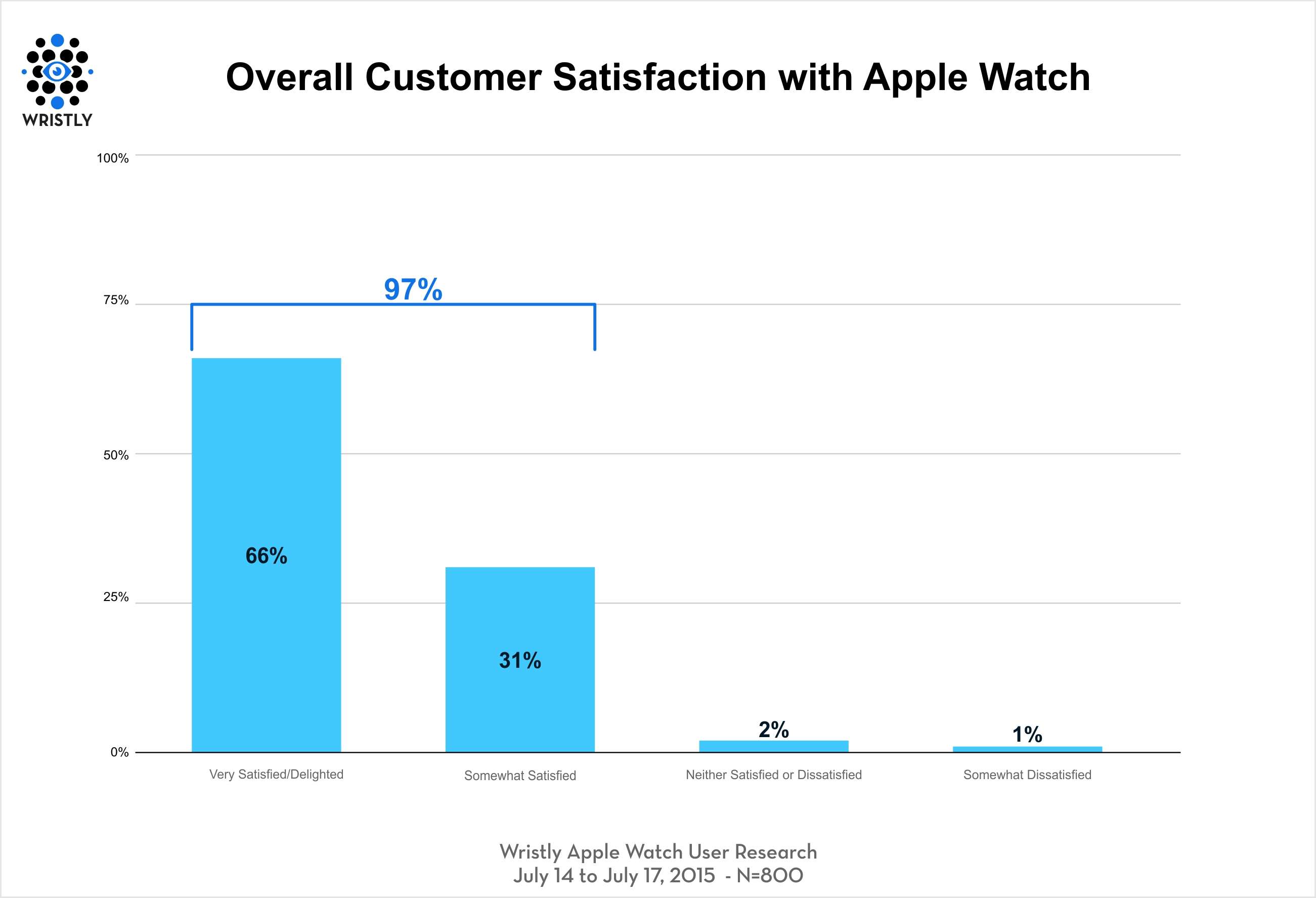 Altro che insuccesso: Apple Watch piace più del primo iPhone e del primo iPad secondo un’indagine di mercato. Lo ha rivelato Wristly, che ha redatto un sondaggio tra più di 800 acquirenti del gadget di Cupertino disponibile anche in Italia. Stando a questi dati, il 97 per cento degli intervista si reputa “molto soddisfatto o comunque soddisfatto” del dispositivo.