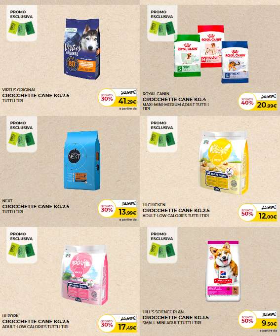 Fino al 13 ottobre, inoltre, è attivo il volantino Arcaplanet “Strizzaprezzi" con sconti che vanno dal 30 al 50% dedicati ai possessori di ArcaCard. In ogni caso, è sempre possibile richiederla gratuitamente. Tra le offerte migliori ci sono le crocchette Hill’s per cani (sacco da 1,5 chili) a 9,50 euro, con uno sconto del 50%; a 3,59 euro, invece, la variante per gatti nella busta da 300 grammi.