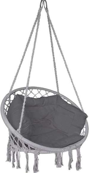 - Poltrona Sospesa da Giardino, Sedia Amaca Altalena Macrame con Cuscino Rotondo, Ø80cm Capacità 120 kg a 44,99€;
