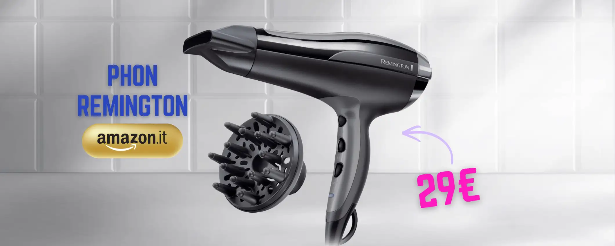 Se stai cercando un asciugacapelli nuovo, approda su Amazon e porta a casa il modello di Remington super semplice, ma efficiente. Lo compri a soli 29€ con lo sconto del 27%.