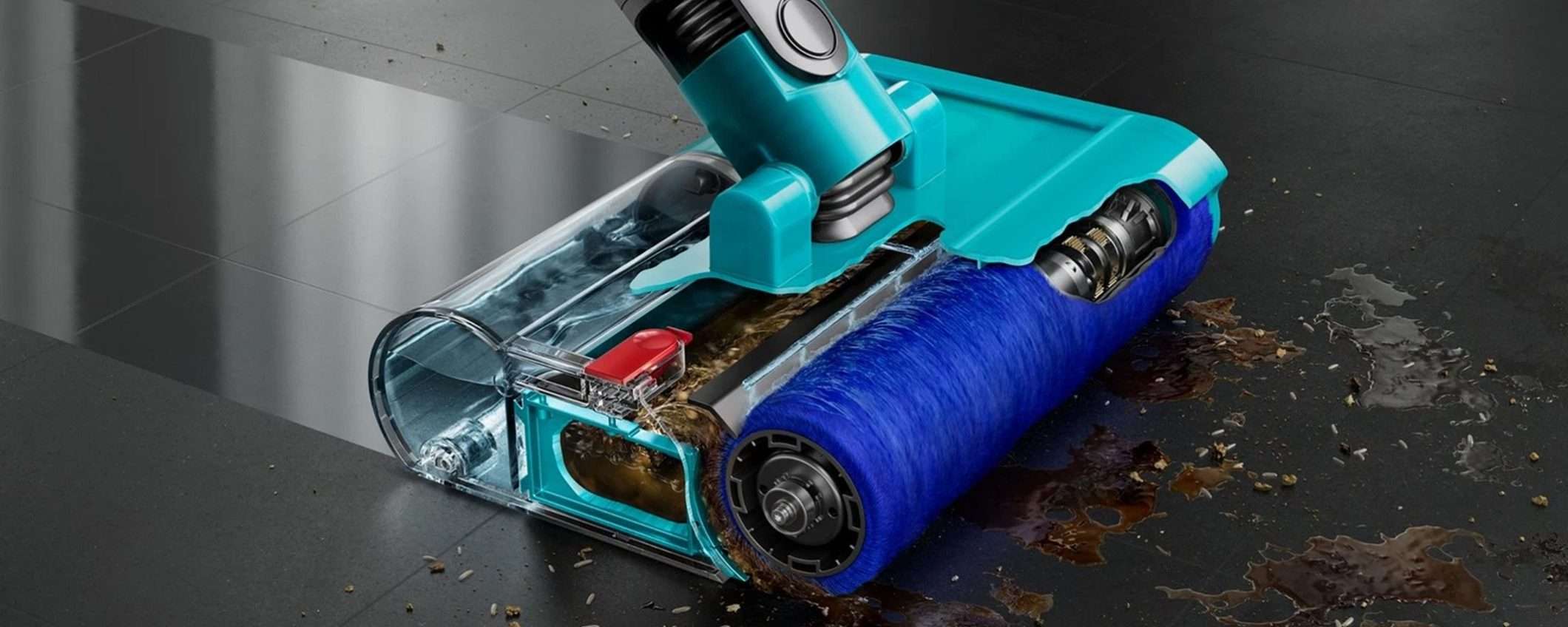 Ma cosa cambia dagli altri Dyson? Il vero cuore del dispositivo è la spazzola lavapavimenti Submarine, dotata di un rullo motorizzato in microfibra che rimuove liquidi e macchie dai pavimenti. Ti sarà utilissima per pulire macchie in bagno, residui di cibo in cucina, impronte di animali domestici e liquidi versati.