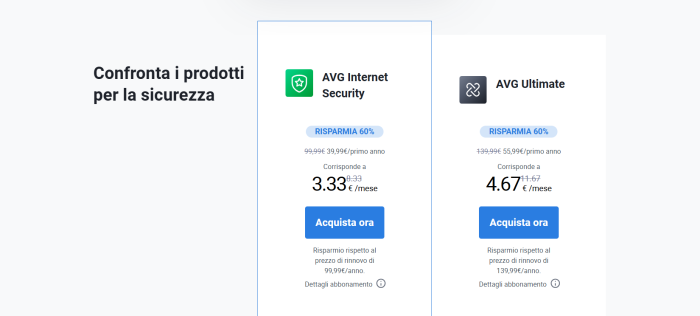 Per maggiori dettagi e per acquistare uno dei piani proposti basta andare sul sito di AVG.