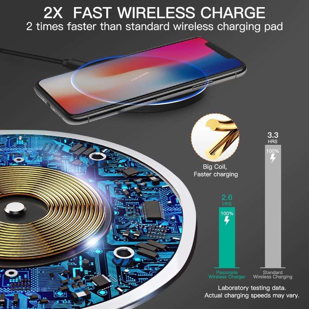 Questa basetta wireless dovrebbe garantire una velocità di ricarica 2 volte più veloce dei classici caricatori senza fili, all’interno della confezione viene fornito un cavo micro-USB da collegare alla corrente tramite un alimentatore compatibile con Quick Charge 2.0 e 3.0.