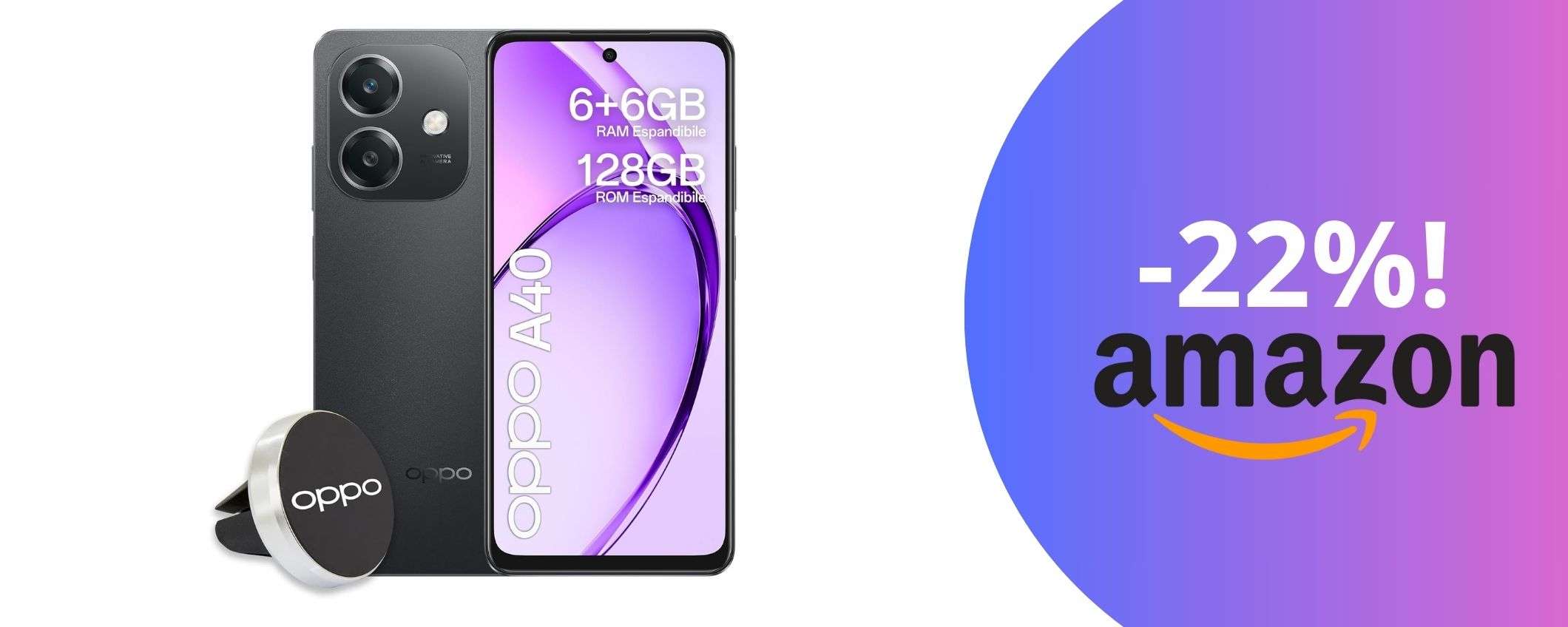 ![OPPO A40 Smartphone, Fotocamera AI 50MP, Selfie 5MP, Display 6.67” 90HZ LCD HD+, 5100mAh, RAM 12GB (6+6) +ROM 128GB (esp1TB), IP54, Supporto Auto [Versione Italia], Sparkle Black](https://m.media-amazon.com/images/I/414CjvGzfZL._SL500_.jpg)