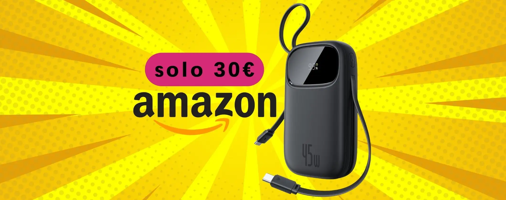 Se sei spesso fuori casa e quindi non sempre hai la possibilità di ricaricare i tuoi dispositivi mobili dai un’occhiata a questa promozione e risolvi il problema con poco. Se vai subito su Amazon infatti potrai mettere nel tuo carrello il Power Bank Baseus a soli 30,39 euro, anziché 37,99 euro, applicando il coupon visibile in pagina.