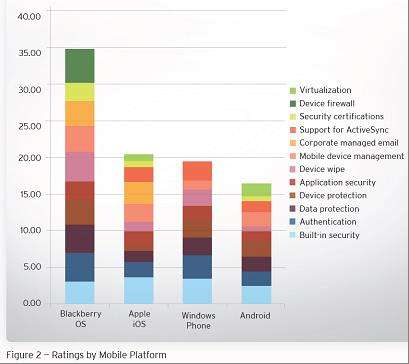 "La superiorità in materia di sicurezza della piattaforma BlackBerry", si legge in una nota diffusa da RIM, "è stato un fattore chiave nell’indagine condotta, determinando punteggi particolarmente alti per quanto riguarda la sicurezza delle applicazioni, l’autenticazione, la cancellazione dei dati dalla memoria dei device, il sistema di firewall dei dispositivi e la virtualizzazione. Gli analisti di Altimeter Group, Bloor Research e Trend Micro hanno riscontrato che il livello di sicurezza di livello enterprise e la manegevolezza della piattaforma BlackBerry ne fanno la soluzione più avanzata per il business."