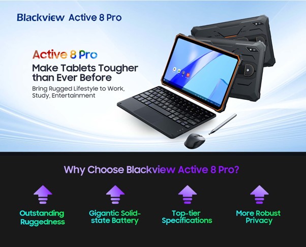 Disponibile il nuovo tablet rugged di fascia alta Blackview Active 8 Pro con standard militare, batteria di grande capacità, fotocamere di alta qualità e molto altro.