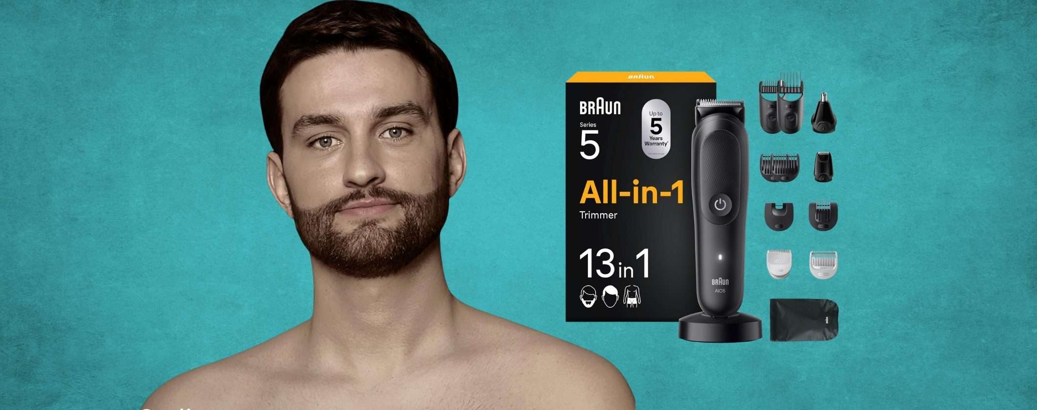 Stai cercando un rasoio elettrico adatto sia per la barba che per i capelli e il corpo senza spendere un mucchio di soldi? Allora non perdere questa fantastica occasione che ti stiamo segnalando. Se vai immediatamente su Amazon puoi mettere nel tuo carrello il rifinitore Braun All-in-One Series a soli 54,98 euro, invece che 89,99 euro.