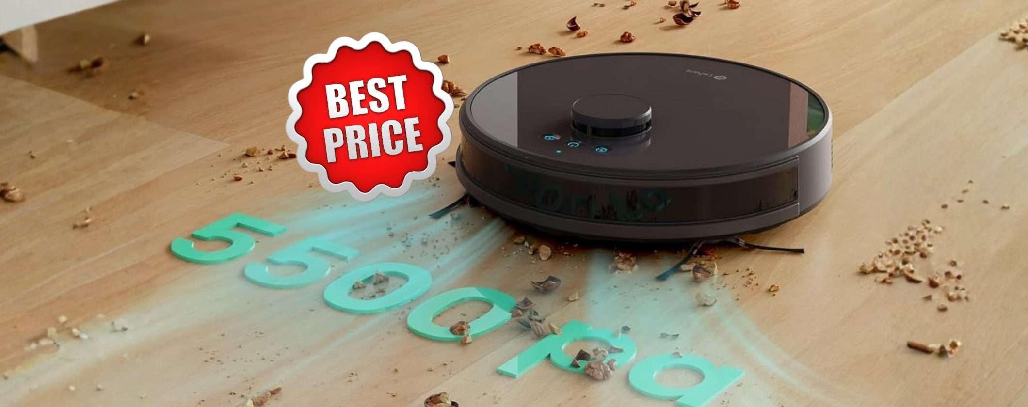 La navigazione laser dToF è molto precisa così che evita gli ostacoli mentre gira per le stanze e non si ferma mai. Inoltre è in grado di mappare le stanze pianificando la pulizia più efficiente. Ha un corpo molto sottile, con un diametro di appena 32 cm, e riesce facilmente a infilarsi sotto i letti e i mobili. Ha un’autonomia che arriva fino a 200 minuti prima di ritornare alla base di ricarica e lo puoi controllare con l’app dedicata e con Alexa.