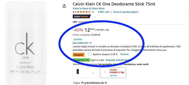 Deodorante in stick da 75 ml a 10,07€ invece di 12,60€ (attiva il coupon in pagina).